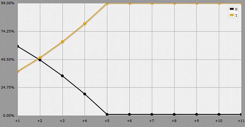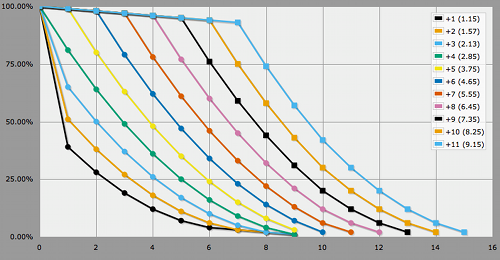 And here are the results, showing margin of success, using the at-least graph view. It kinda looks like a "balance achieved" stick from which "aspect plus skill" threads hang.